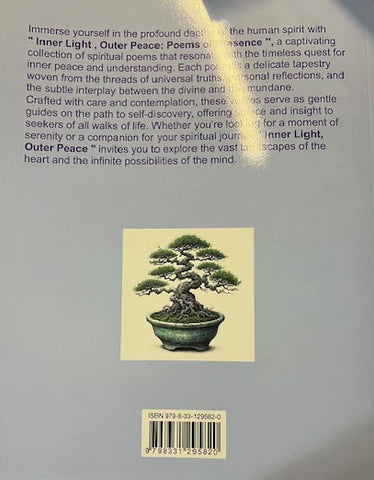 Crafted with care and contemplation, these verses serve as gentle guides on the path to self-discovery, offering solace and insight to seekers of all walks of life. Whether you're looking for a moment of serenity or a companion for your spiritual journey, "Inner Light, Outer Peace" invites you to explore the vast landscapes of the heart and the infinite possibilities of the mind.